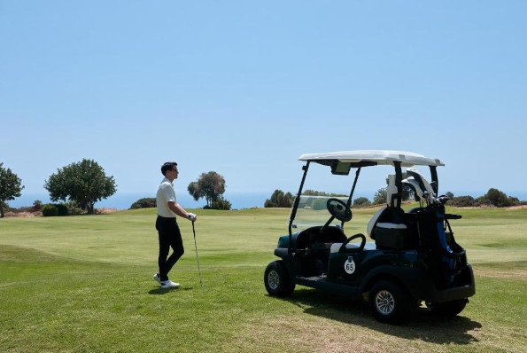 Der faszinierende PGA Golf Course Aphrodite Hills liegt 300 Meter über dem Mittelmeer. Er wurde zusammen mit einer großen 450 m langen Driving Range, einer 3-LochGolfakedemie und einem hervorragenden Clubhaus auf zwei teils mit Olivenbäumen bestandenen Plateaus harmonisch in die bizarre Landschaft der Kalksteinküste hineinkomponiert. Es ist kein leichter Touristenplatz, sondern ein Champion, wie er im Buche steht. Der Golfplatz ist nur mit Golfcart zu bespielen (inkl.), da die Wege zwischen den Fairways teilweise sehr lang sind.